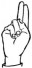 На ћирилици написано НИКОДИЈЕ СИМЕУНОВИЋ састоји се из 18 слова [?]. Исписано ћириличном једноручном азбуком за глувонеме:
